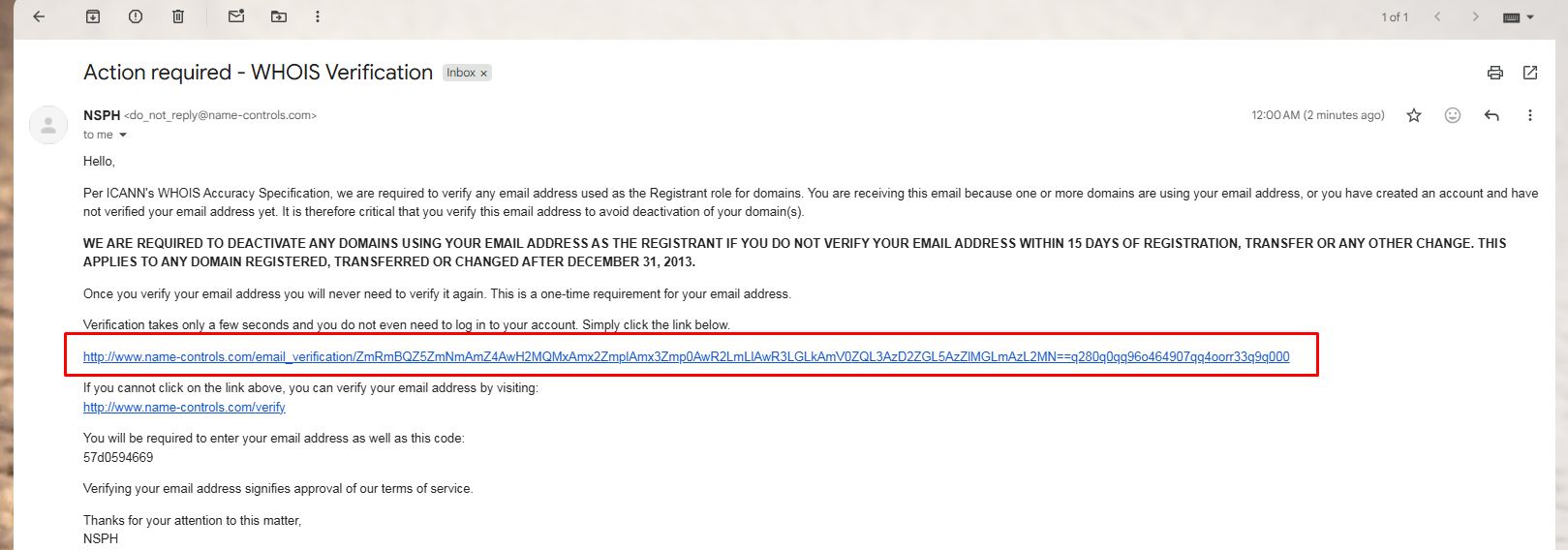এটি ভেরিফাই না করা থাকলে ডোমেইন টি সাসপেন্ড হয়ে যাবে তখন আর ডোমেইন কাজ করবে না, এটি হলো রেজিস্ট্রেন্ট ভেরিফিকেশন যখন আপনি আমাদের থেকে ডোমেইনটি ক্রয় করছেন তখন আপনার মেইলে নিচের স্ক্রিনশুট এর মতো একটি মেইল দেওয়া হয়েছে